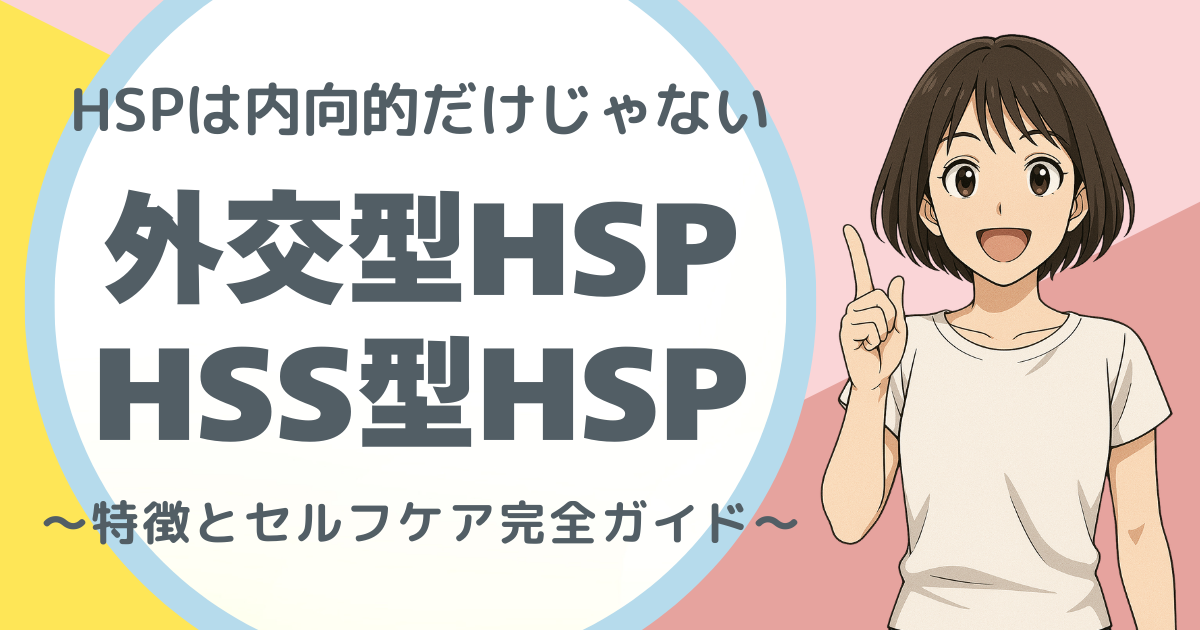 ここでは 「内向型だけじゃないHSPのタイプ」 として、外交型HSPやHSS型HSPの特徴をわかりやすく解説していきます。読み終えたときに、自分に合ったセルフケアのヒントが見つかるはずです。