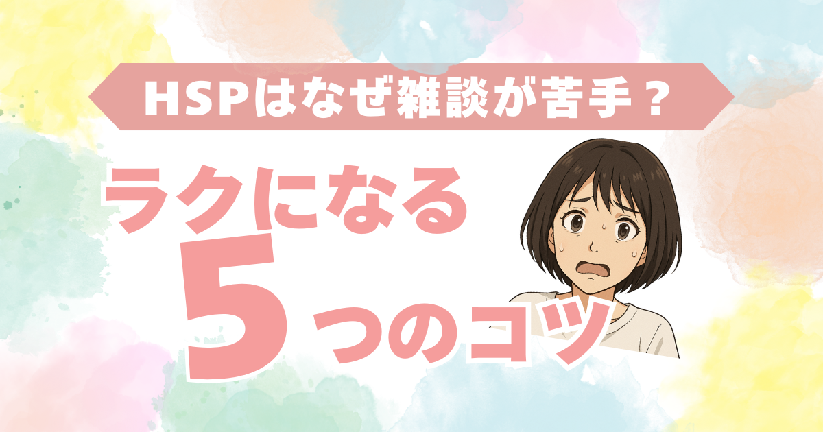 HSPが雑談を苦手に感じるのは、自然なことです。無理に雑談をする必要もないのですが、少しでも“楽しく雑談できたら嬉しいな”という方にピッタリ!日常で取り入れやすく実際に役立つラクに話せる工夫を5つご紹介します。